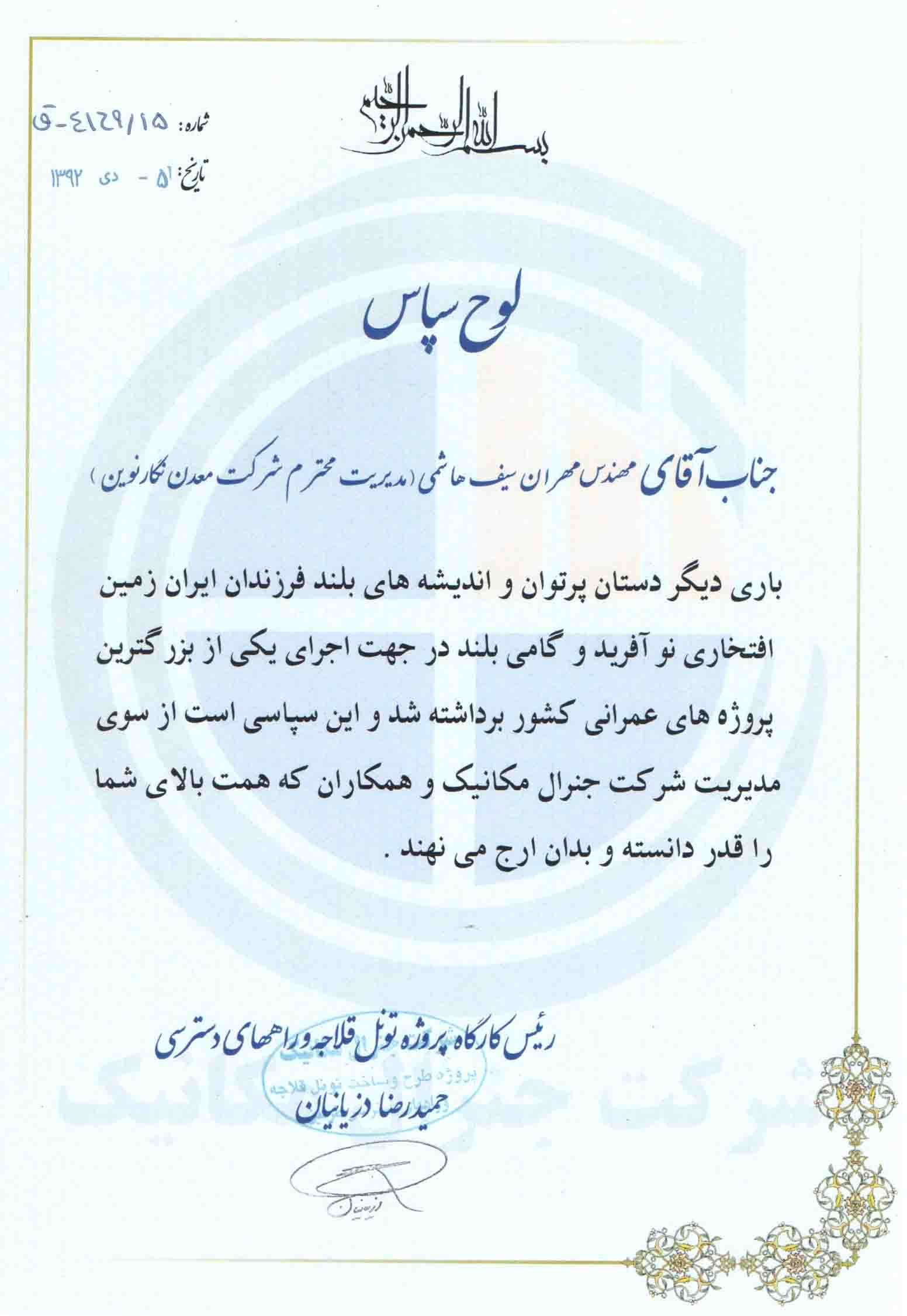 تقدیر نامه ها
